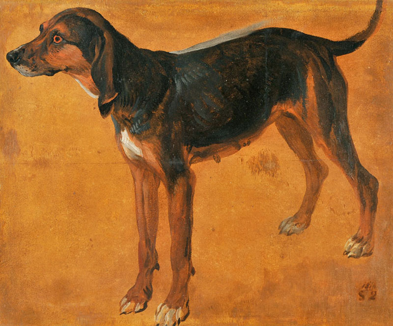 Cette œuvre fait partie de douze études de François Desportes (Champigneulle, 1661 ; Paris, 1743), réalisées à l’huile sur papier beige préparé et collé sur carton, conservées au musée de la Vénerie. Elles appartiennent au fonds d’atelier de l’artiste préservé par son fils et élève Claude-François Desportes (1695-1774). Ce fonds, constitué de plusieurs centaines d’études et de quelques tableaux, est conservé à la manufacture nationale de Sèvres où il était destiné à servir de modèles pour les dessinateurs de porcelaine.