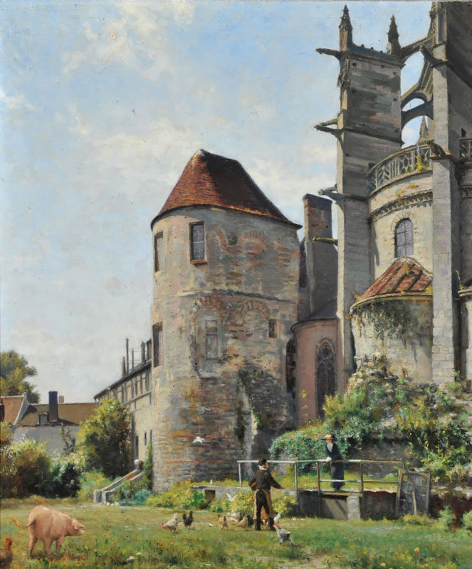 Ex : Francis TATTEGRAIN, Le chevet de la cathédrale de Senlis, tableau acquis en salle des ventes à Senlis.